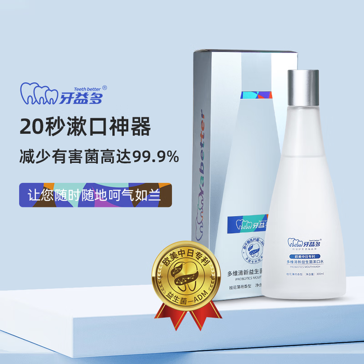 牙益多益生菌漱口水持久清新口氣持久留香抑菌99.9%溫和不刺激 1瓶