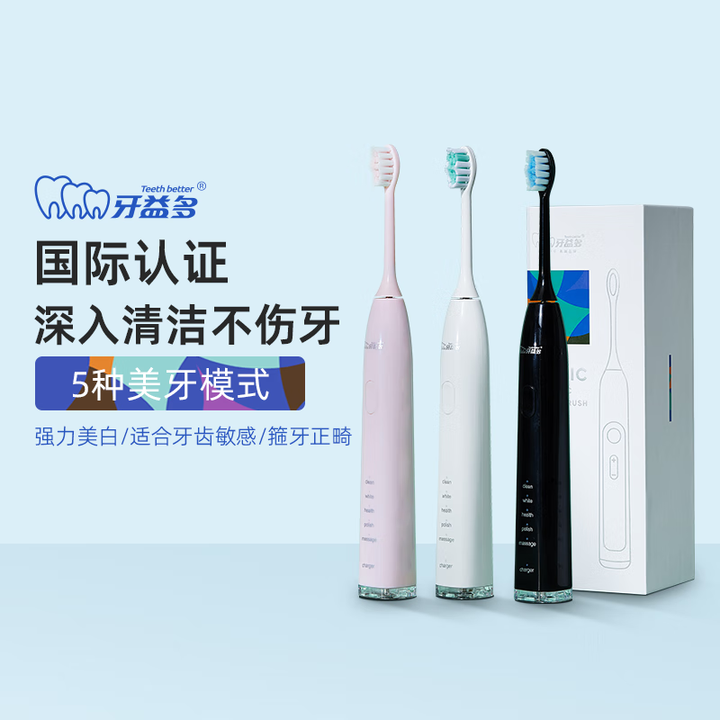 牙益多高端聲波電動牙刷5種美牙方案 靚白護牙神器 月色白